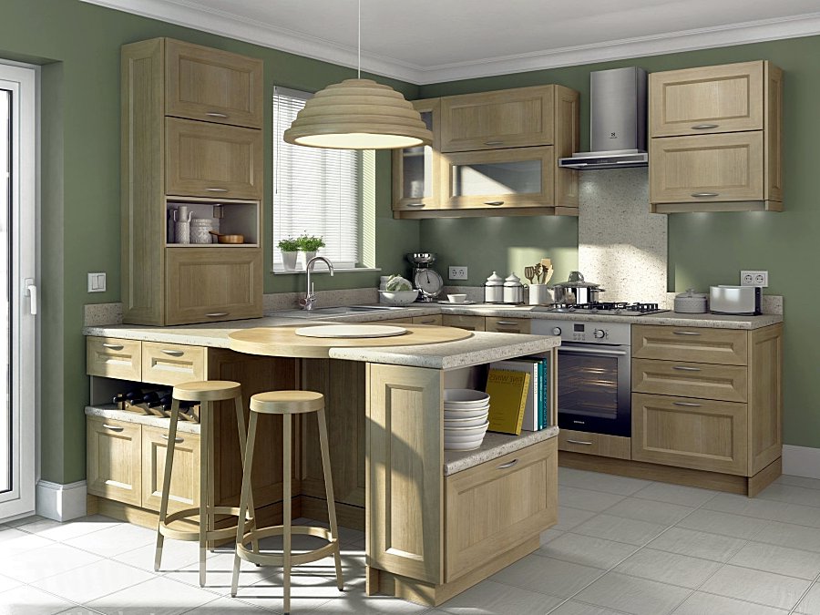 П-образное расположение уместно в очень просторных кухнях. При этом в центре будет уместен обеденный стол. А если вместо стола создать композицию, в которую будет входить разделочная поверхность с нижним хранением и/или мойка, плита, барная стойка, то такая кухня будет называться островной. Полуостровная кухня — это когда все то же самое будет соединяться с одной из стен.